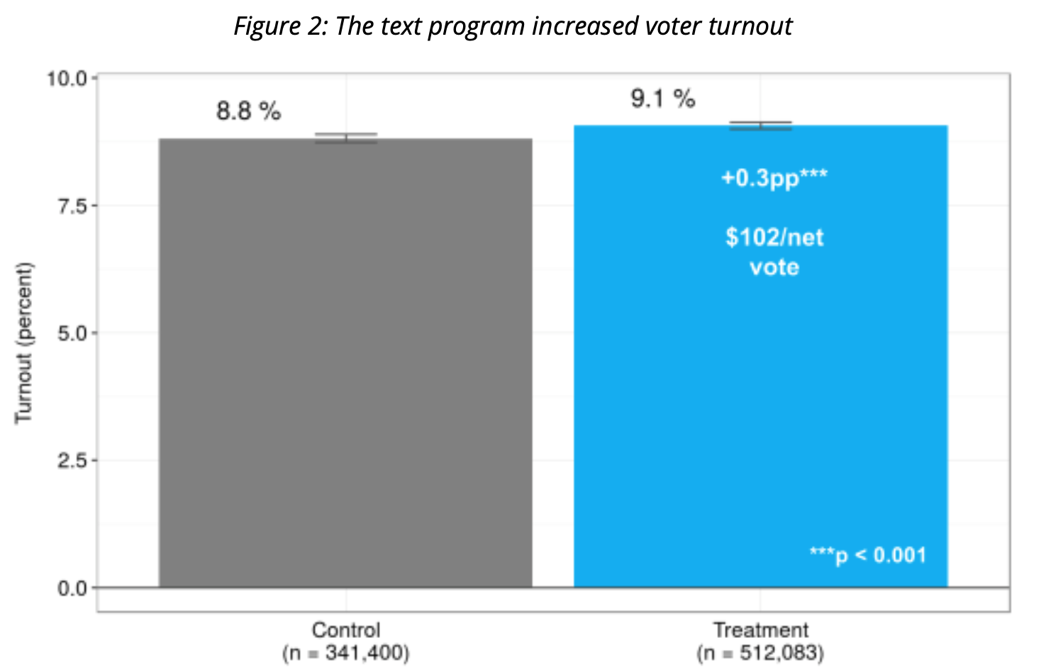 Figure 2: The text program increased voter turnout