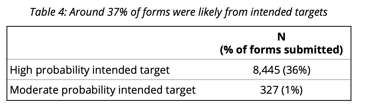 Table 4: Around 37% of forms were likely from intended targets