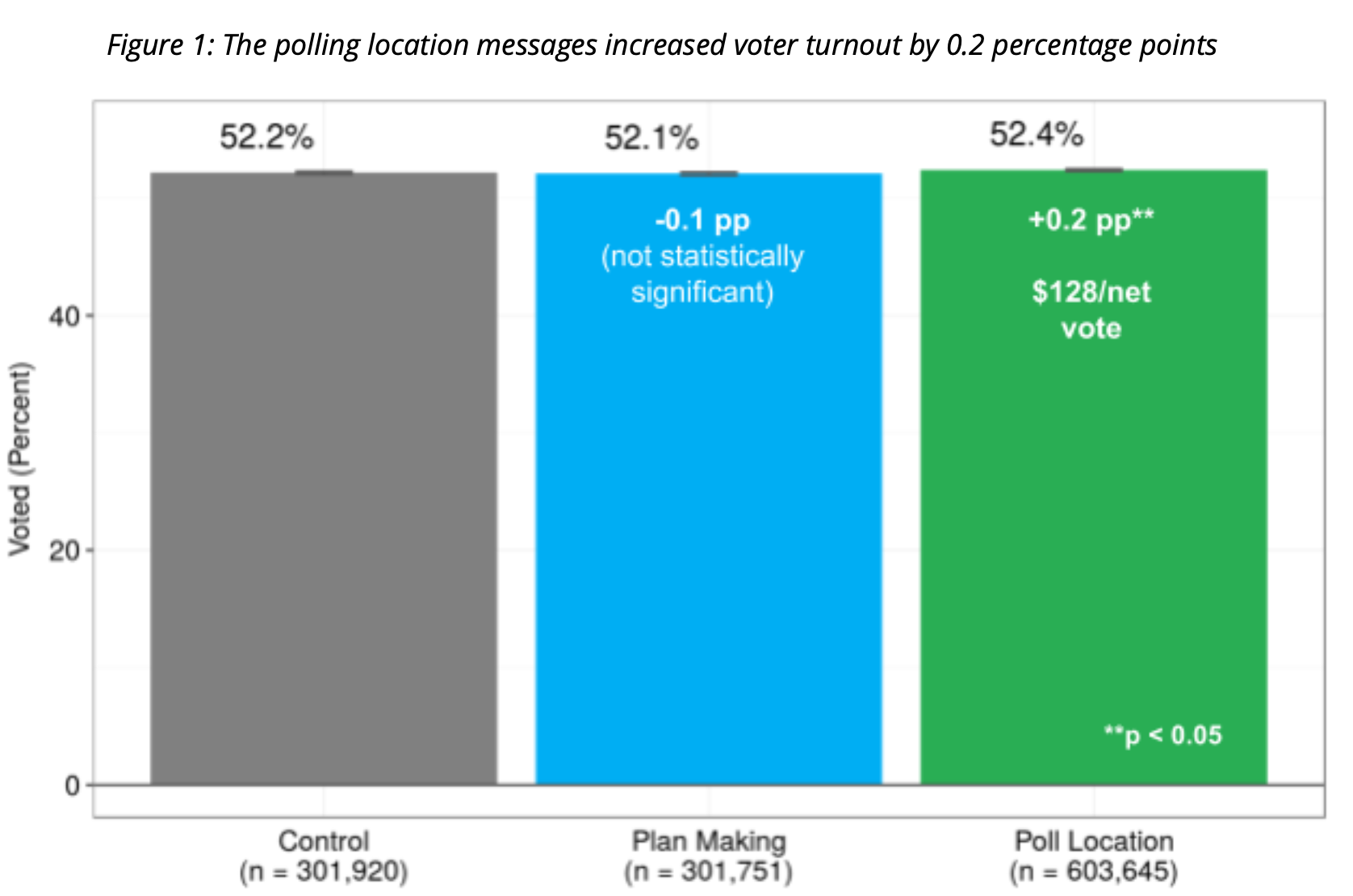 Figure 1: The polling location messages increased voter turnout by 0.2 percentage points