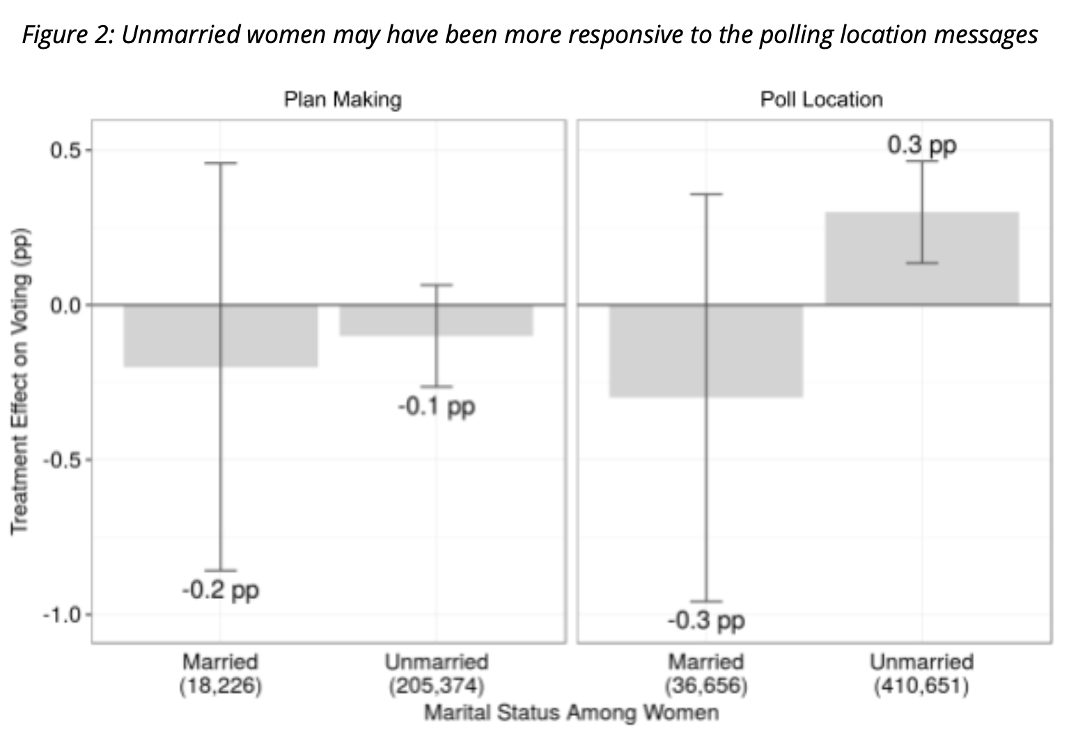 Figure 2: Unmarried women may have been more responsive to the polling location messages
