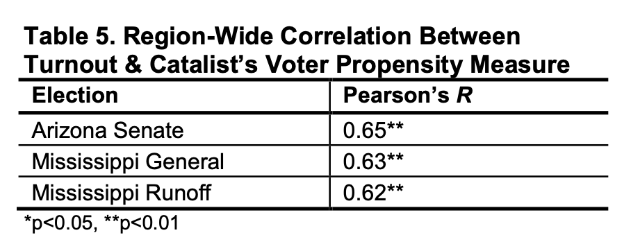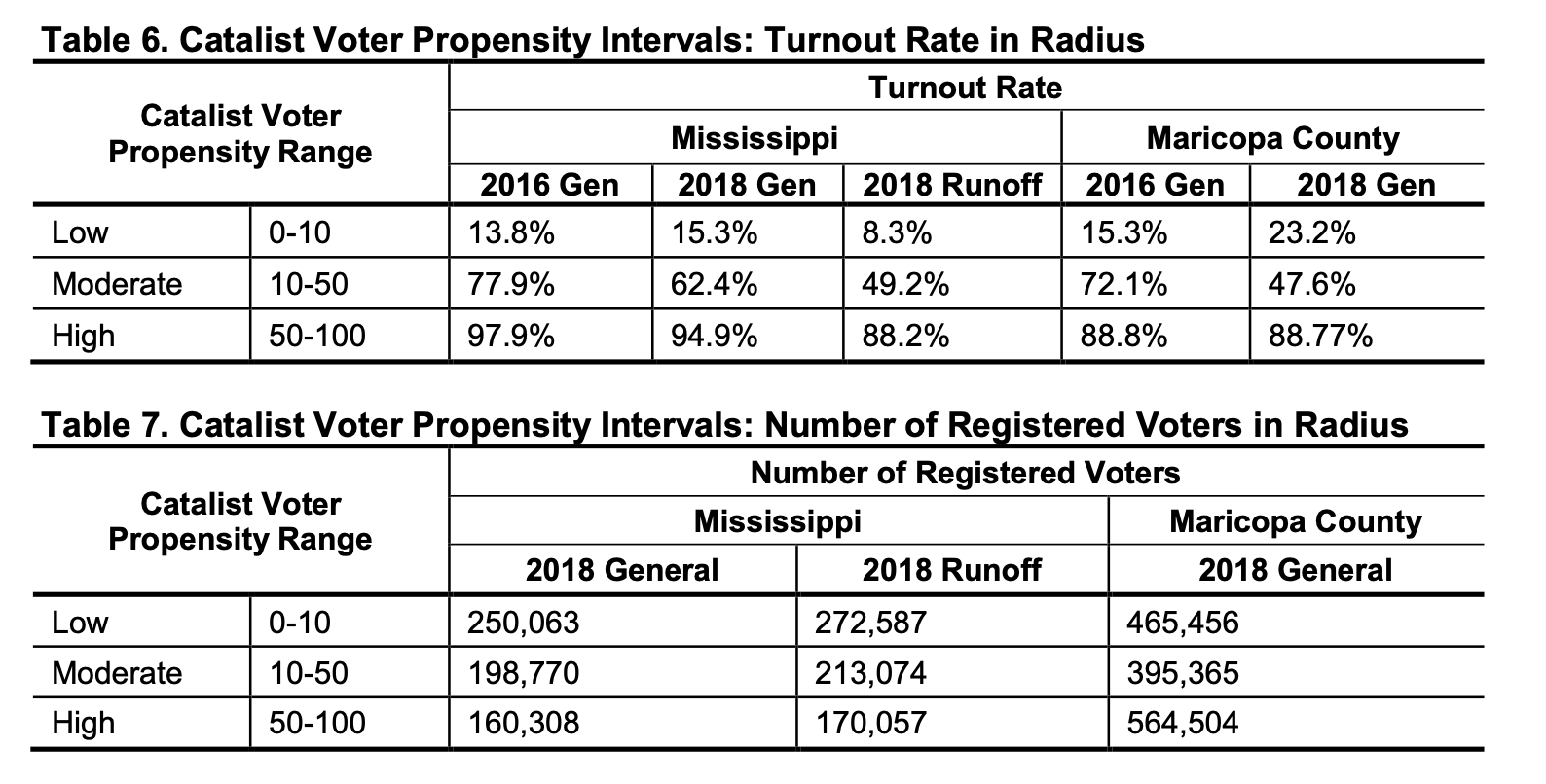 - There was a positive effect on turnout for both low and moderate propensity voters. However, the effect for low propensity was limited to the Mississippi general election.