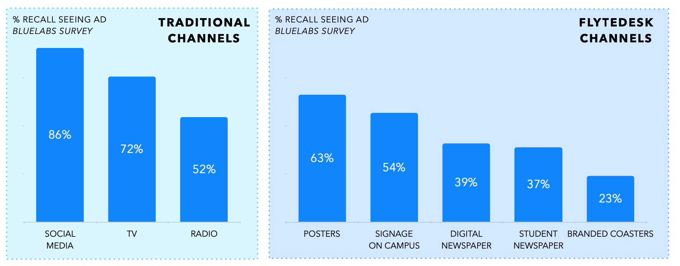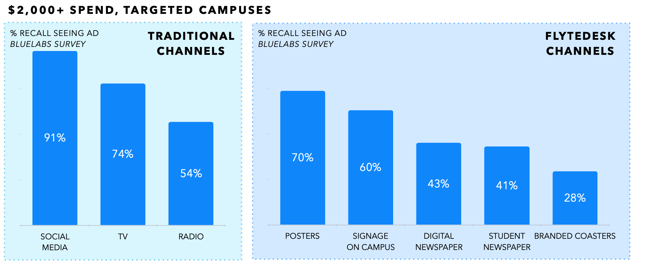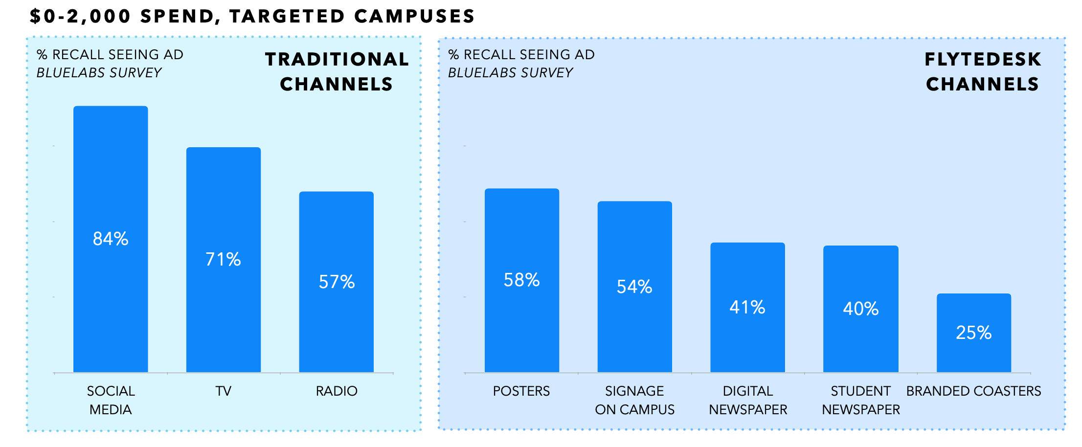 THE LIFT IN AD RECALL OCCURRED ON CAMPUSES WHERE INVESTMENT IN FLYTEDESK ADVERTISING WAS HIGHER.