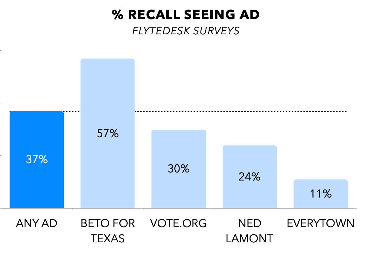 For this analysis, BlueLabs compiled results of self- reported ad recall from both the Flytedesk surveys and the BlueLabs surveys.
