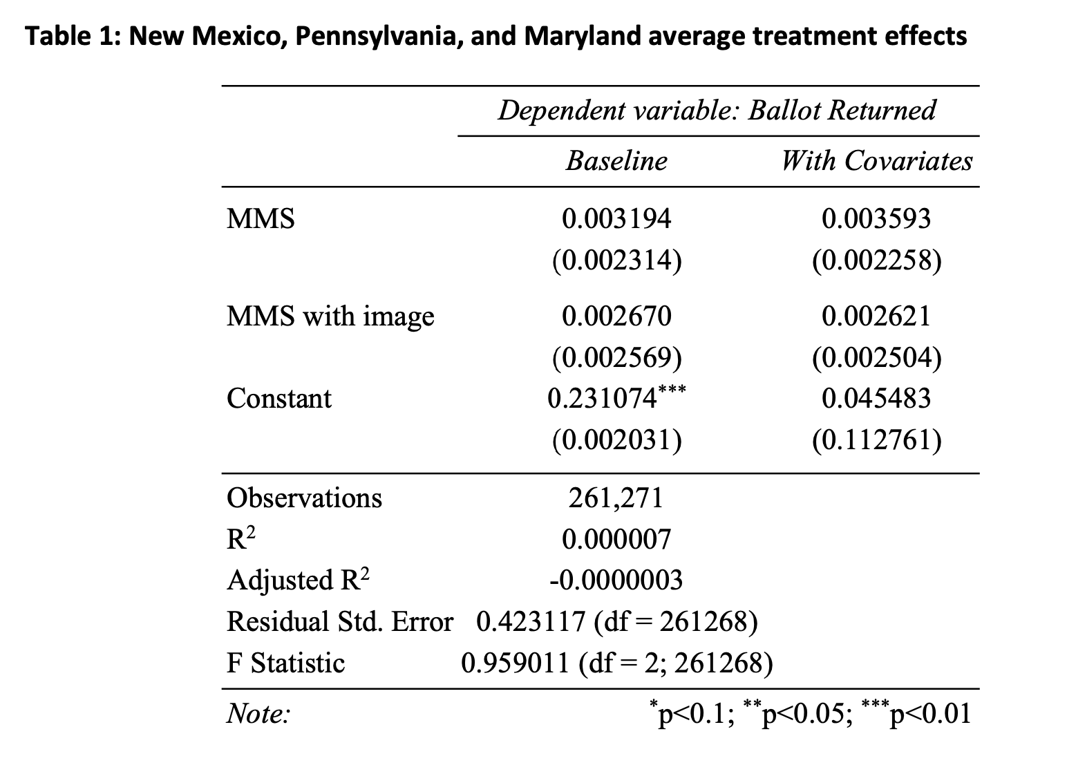 These results indicate that text messaging and robo-calls are an effective method of increasing turnout among people who are voting by mail. While it can often feel like the pandemic ‘changes everything’, the psychological mechanisms from delivering low-cost messages about return ballots remains an effective way to increase participation.